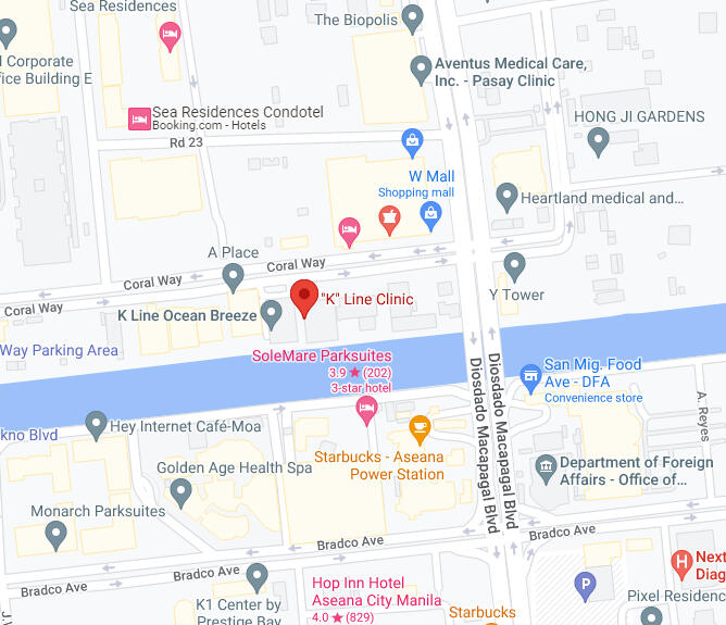 K LINE CLINIC is a DOH Accredited Medical Facility Licensed in May 2008. It is located at 2nd Flr., Coral Drive, Macapagal Blvd., Pasay City with Telephone no: 85562955The clinic is designed for Pre-employment Medical Examination of Seafarers with the mission to provide high quality healthcare services for seafarers by enabling them access to an unbiased, efficient and comprehensive screening.The clinic is owned by Rayomar Metro Services, Inc., a subsidiary of Rayomar Group of Companies, a Filipino private corporation with Mr. Jose Ramon R. Garcia as President, Mr. Ramon L. Caballero as General Manager, and Dr. Maria Luisa M. Sanchez as Medical Director.